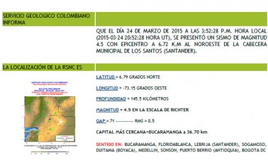 A las 8:02 am de este domingo ocurrió un sismo en ese municipio del Catatumbo, según el Servicio Geológico.