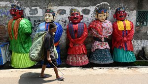 Los niños que se ganan la vida con gigantes títeres