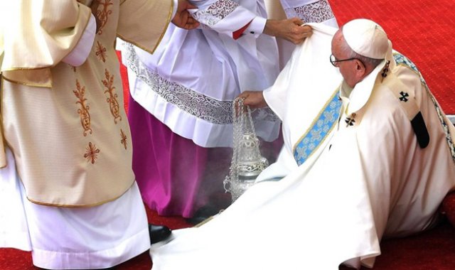 Francisco se dirigía al altar y tuvo que ser levantado por un grupo de religiosos que lo asistían.