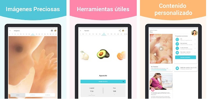 Adicionalmente proporciona imágenes interactivas sobre el desarrollo del bebé semana a semana. Es una de las app sobre embarazo con mayores descargas en el mundo.
