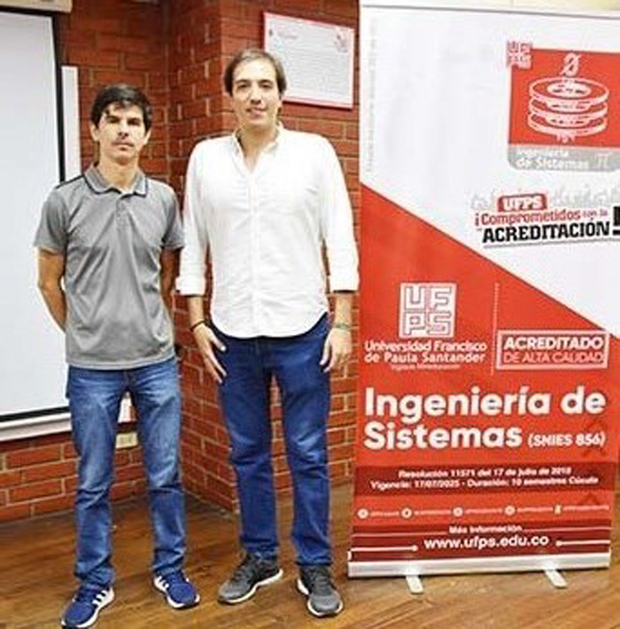 En la imagen el profesor Matías Herrera Cáceres, docente del Departamento de Sistemas, y Felipe Restrepo, de Relaciones Publicas de Huawei Colombia.