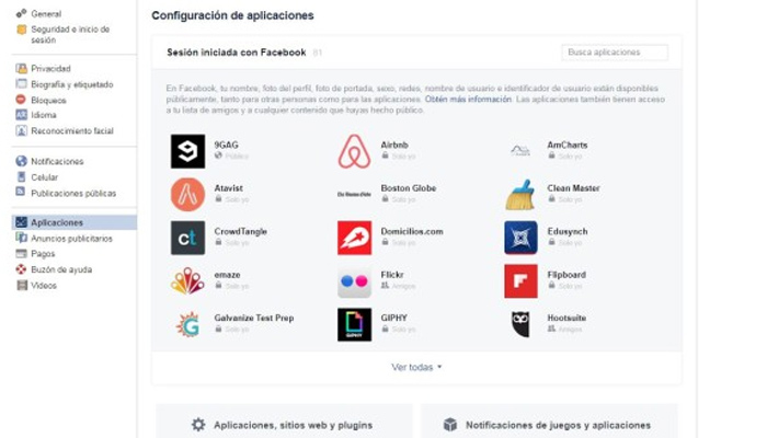 Usted puede saber exactamente cuántas y cuáles aplicaciones tienen acceso a su información, y si quiere, quitarles esos permisos. Sólo tiene que ir al menú de Configuración y hacer clic en la pestaña Aplicaciones.