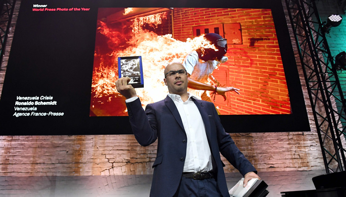 Premiada como la Mejor Foto del Año del prestigioso certamen World Press Photo (WPP) este jueves en Amsterdam, la fotografía captó el momento en el que Víctor Salazar, un estudiante de Bioanálisis de 28 años, ardía como una antorcha.