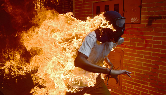 Ronaldo Schemidt, de la AFP, captó a un manifestante en llamas durante las protestas contra Maduro.