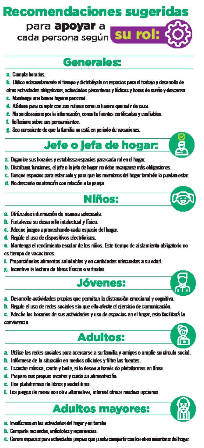 Algunas personas hoy disfrutan de compartir más con sus familias gracias al confinamiento, pues les es positivo. Sin embargo, los profesionales en el tema no dudan en aconsejar que, para sobrellevar esta nueva realidad, bien sea positiva o negativa, se requiere de preparación y organización en sus roles.