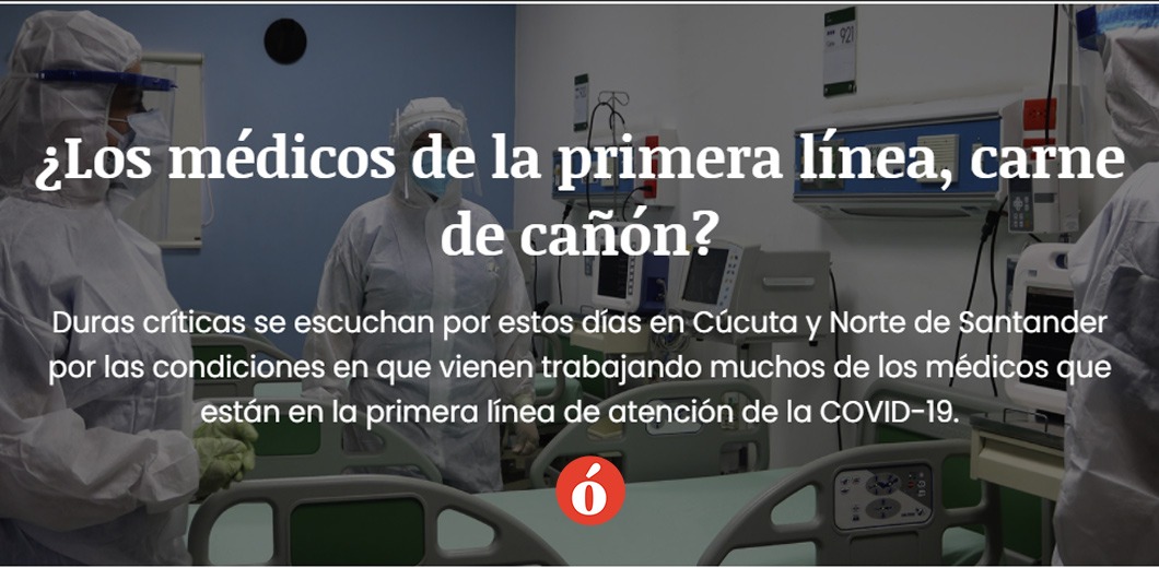 Duras críticas se escuchan por estos días en Cúcuta y Norte de Santander por las condiciones en que vienen trabajando muchos de los médicos que están en la primera línea de atención de la COVID-19.