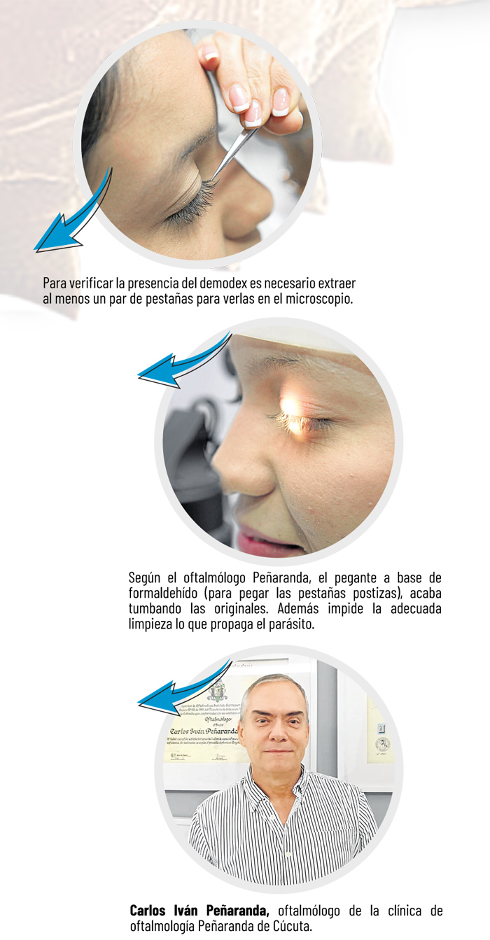Cada pestaña puede ser nido de 25 huevos que en cuestión de dos días y medio se convierten en adultos. Tienen cerca de 15 días para aparearse en esta zona, comer grasa, restos de maquillaje y degradarse en la piel, así lo explica el doctor Carlos Iván Peñaranda, oftalmólogo de la clínica de oftalmología Peñaranda de Cúcuta.