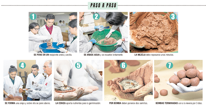 La iniciativa liderada por el docente del programa de ingeniería agronómica de la Universidad Francisco de Paula Santander (UFPS), Evaristo Alberto Carvajal Valderrama, consiste en la elaboración de bombas de semillas en los laboratorios de biología de la institución, para luego ser lanzadas en terrenos estratégicos donde la capa vegetal ha desaparecido.