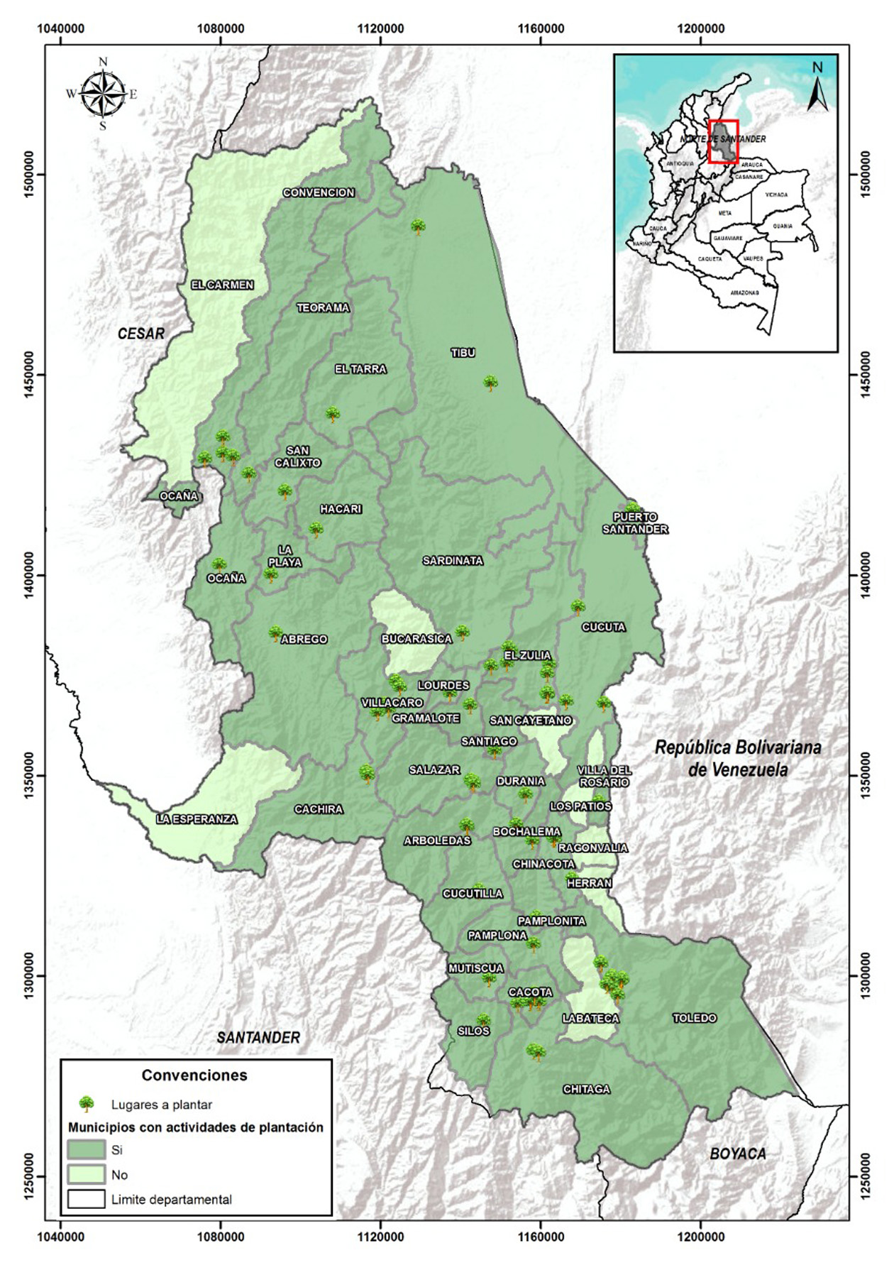 Los municipios en donde se inician las jornadas de repoblamiento vegetal son Chinácota, Salazar, Sardinata, Villa Caro, Lourdes, Toledo, Cácota, Silos, Cucutilla, Mutiscua, Durania, Arboledas, Pamplonita, Pamplona, Chitagá, Tibú, El Tarra, Gramalote, Santiago, Bochalema, Ocaña, Ábrego, La Playa, Hacarí, San Calixto, Teorama, Cáchira y Convención. En la lista también figuran Cúcuta y municipios del área metropolitana como Villa del Rosario, Puerto Santander y El Zulia.