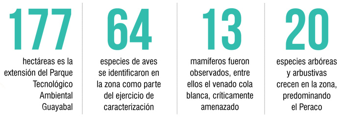 En el caso del relleno sanitario Guayabal se encontraron 64 especies de aves, entre las que se destacan el Bienparado común (Nyctibius griseus) y la garza silbadora (Syrigma sibilatrix). En el PTA Las Bateas el registro ascendió a 67 especies, seis de las cuales son migratorias.