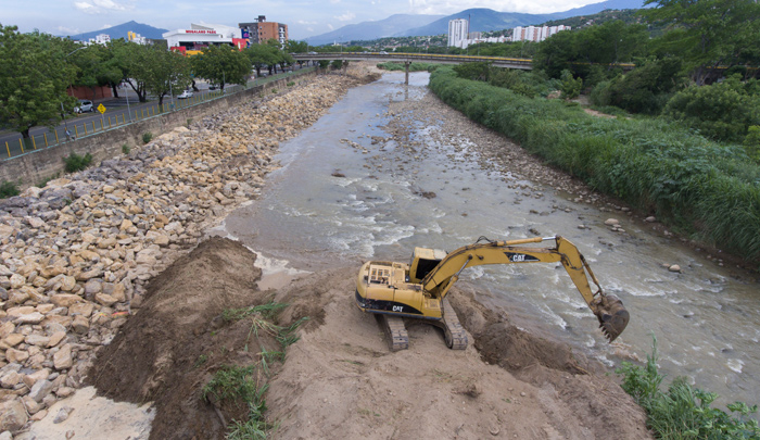 1.600 metros lineales sobre la margen izquierda del río, aguas abajo del puente de San Rafael, se están interviniendo actualmente.(Foto Juan Pablo Cohen)