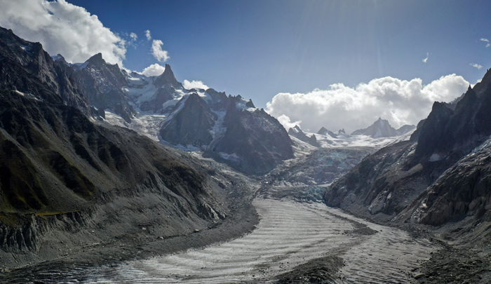 Hace 100 años, el célebre Mar de Hielo serpenteaba, bien blanco, las montañas. Un siglo más tarde, el glaciar francés más grande, ahora grisáceo, dejó lugar en gran parte a la roca. "Se puede ver que en ciertos lugares el Mar de Hielo ha perdido varios cientos de metros de altura", señala Kieran Baxter. Este hecho no fue "una sorpresa" para él, pero, a pesar de todo, "es asombroso ver estos cambios", afirma.