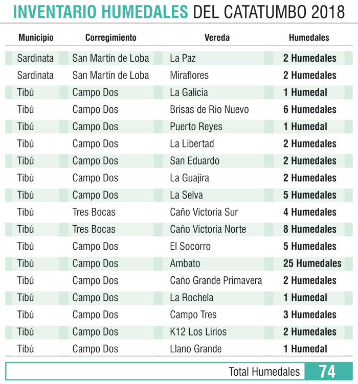 112 humedales hallados en los municipios de Tibú y Sardinata.