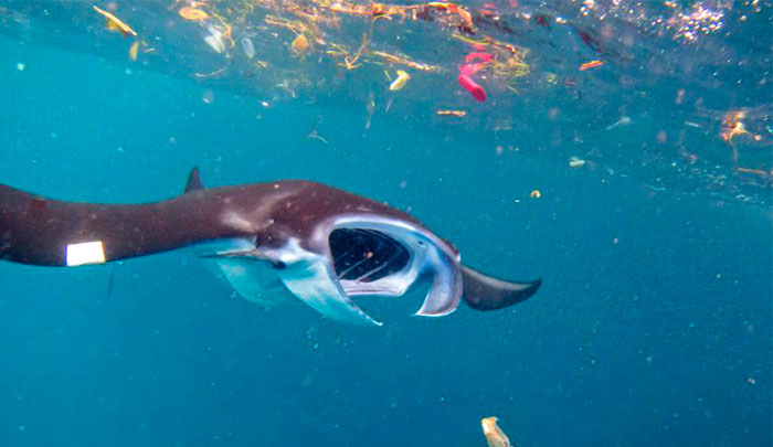 Las rayas Mobula están amenazadas por los microplásticos. Foto Elitza Germanov / Fundación Megafauna Marina​