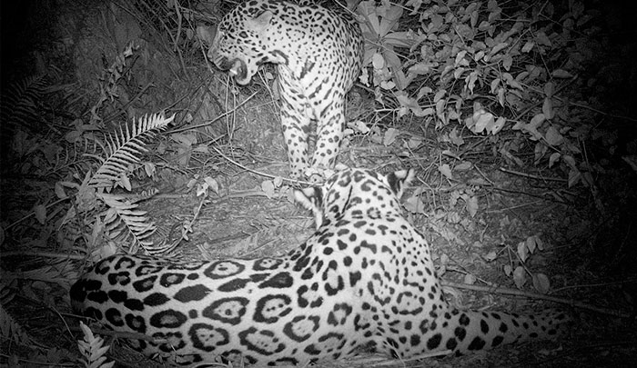 Pareja de jaguares adultos en cortejo cerca del sector Aguas Calientes, sur del lago de Maracaibo. Foto: Proyecto Sebraba.